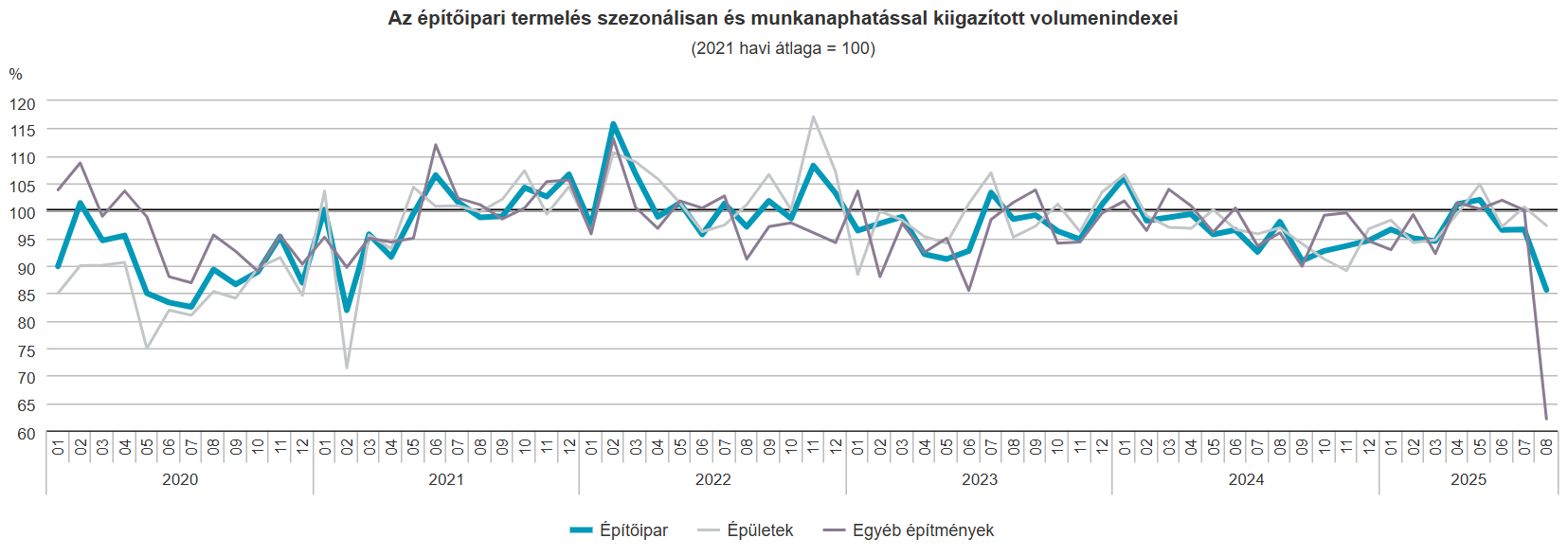 2025 augusztusában az építőipari termelés volumene a nyers adatok szerint 15,2, a munkanaptényezővel kiigazított adatok alapján 13,6%-kal...